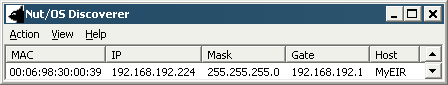 If not yet done, install the latest Nut/OS distribution. This package includes a tiny utility named Nut/OS Discoverer. Start it and select Scan from the Action menu. It will then discover all Nut/OS nodes in your local network.