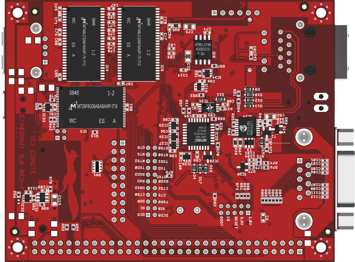 The basis is a 6-layer PCB, where mostly SMT components are mounted on both sides. Completely mounted and tested boards are available from egnite GmbH.