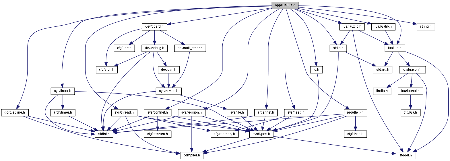 #include <dev/board.h>#include <sys/version.h>#include <sys/heap.h>#include <sys/timer.h>#include <sys/confnet.h>#include <sys/thread.h>#include <gorp/edline.h>#include <arpa/inet.h>#include <pro/dhcp.h>#include <stdio.h>#include <io.h>#include <string.h>#include <lua/lua.h>#include <lua/lauxlib.h>#include <lua/lualib.h>