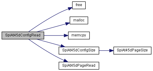 References free(), malloc(), memcpy(), SpiAt45dConfigSize(), and SpiAt45dPageRead().