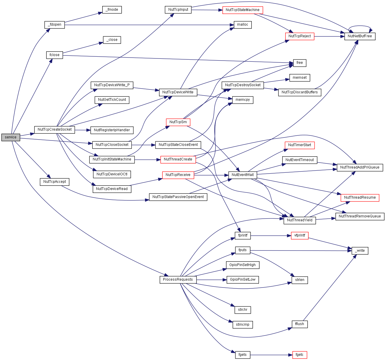 References _fdopen(), fclose(), MY_PORT, NutTcpAccept(), NutTcpCloseSocket(), NutTcpCreateSocket(), and ProcessRequests().