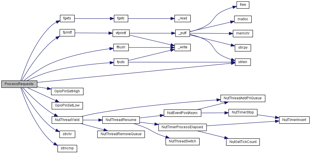 References fflush(), fgets(), fprintf(), fputs(), GpioPinSetHigh(), GpioPinSetLow(), NutHeapAvailable, NutThreadYield(), strchr(), strlen(), and strncmp().