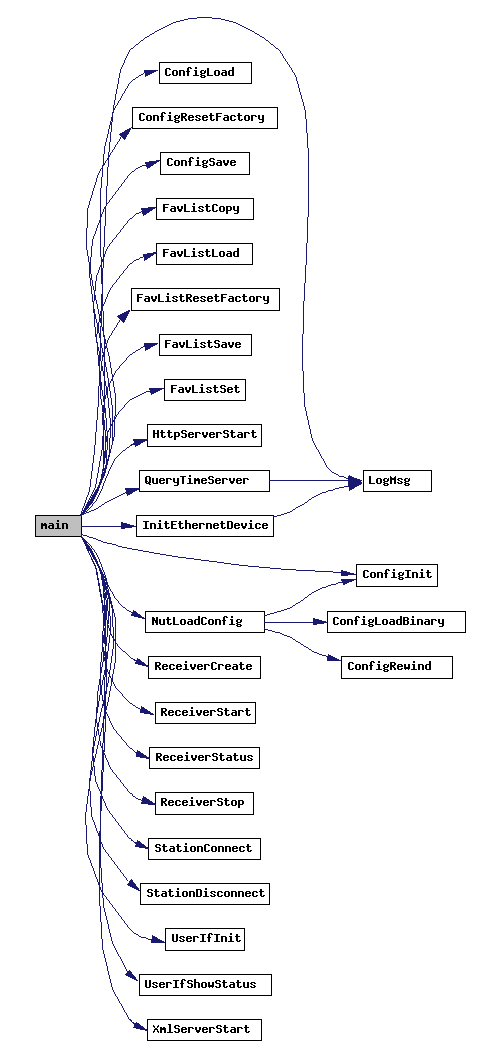 Benutzt ConfigInit(), ConfigLoad(), ConfigResetFactory(), ConfigSave(), confnet, confos, DIST_CONNECTED, DIST_CONNECTING, DIST_DEAD, DIST_FORCE, DIST_NONE, favlist, FavListCopy(), FavListLoad(), FavListResetFactory(), FavListSave(), FavListSet(), h_timevalid, HttpServerStart(), InitEthernetDevice(), LAST_FAVORITE, LOG_ERROR, LOG_STARTUP, LOG_STATION, LOG_WARN, LogMsg(), NutLoadConfig(), QueryTimeServer(), ReceiverCreate(), ReceiverStart(), ReceiverStatus(), ReceiverStop(), rpiShoutcast, RSTAT_IDLE, RSTAT_STOP, StationConnect(), StationDisconnect(), TOP_FAVORITE, UserIfInit(), UserIfShowStatus(), VERSION, WEBRADIO::wr_favupd, WEBRADIO::wr_pridns, WEBRADIO::wr_reboot, WEBRADIO::wr_rip, WEBRADIO::wr_ritab, WEBRADIO::wr_secdns, WEBRADIO::wr_sip und XmlServerStart().